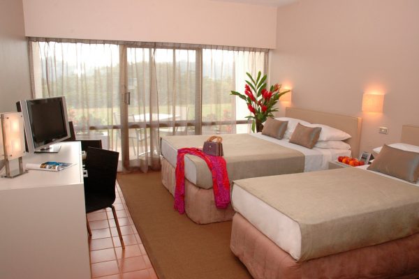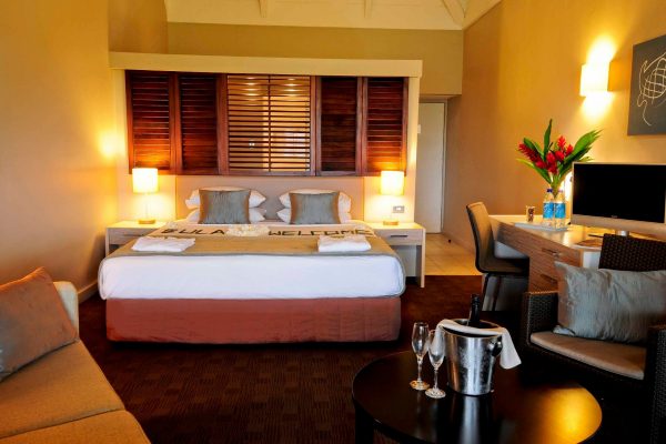 Novotel Nadi is een modern hotel dat op korte afstand ligt van de luchthaven. Het ligt ideaal voor als u laat arriveert op Fiji. Het Novotel Nadi is gebouwd in een traditionele Fiji stijl en van alle moderne gemakken voorzien. Er is een restaurant aanwezig dat een ruime keuze heeft aan internationale gerechten en een bar. Het hotel heeft 127 grote, moderne rookvrije kamers. De kamers zin voorzien van airco, tv, telefoon, minibar en balkon/terras. Voor uw ontspanning kunt u gebruik maken van het zwembad, spa, fitnessruimte en tennisbaan. Ook is er een 9-holes golfbaan aanwezig, 24/7 roomservice en gratis wifi.